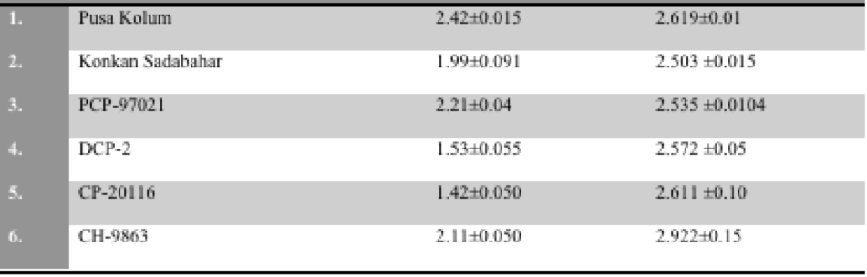 The study reveals that Pusa Kolum is the best source for Kaempferol whereas CH-9863 is for Stigmasterol. These sources can be used by Pharmaceutical industries.References