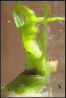 1-2: Direct shoot regeneration in 2 and 3 mg/l Kinetin after 6weeks.